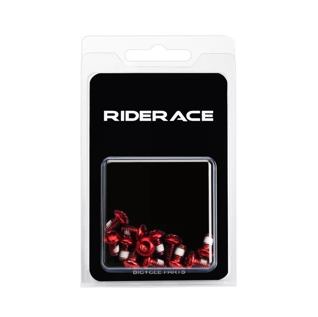 Комплектація: болти для кріплення гальмівного диска RIDERACE (червоні) для велосипеда — 12 шт. Т25/М5х9 мм