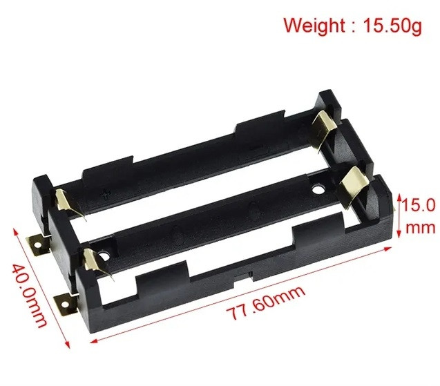 Слот використовується для монтажу на плату акумуляторів типу 18650 — 2 шт. Матеріал: ABS пластик.