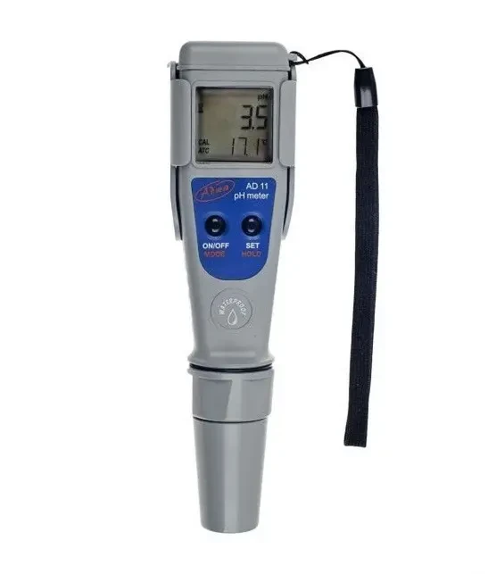 Вологозахищений pH-метр ADWA AD11 призначений для вимірювання рівня pH розчинів у широкому діапазоні від -2 до 16 одиниць pH з автоматичною температурною компенсацією.